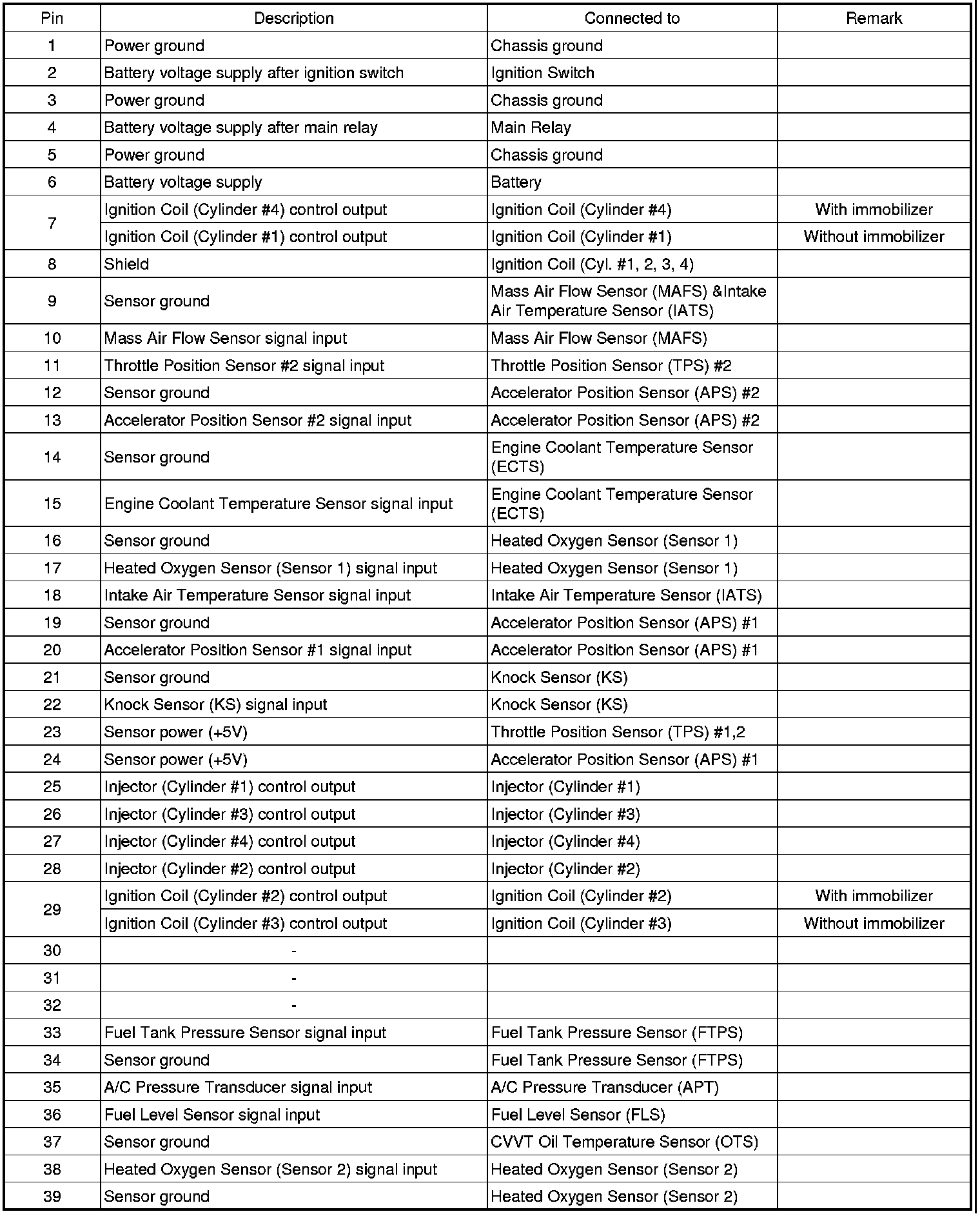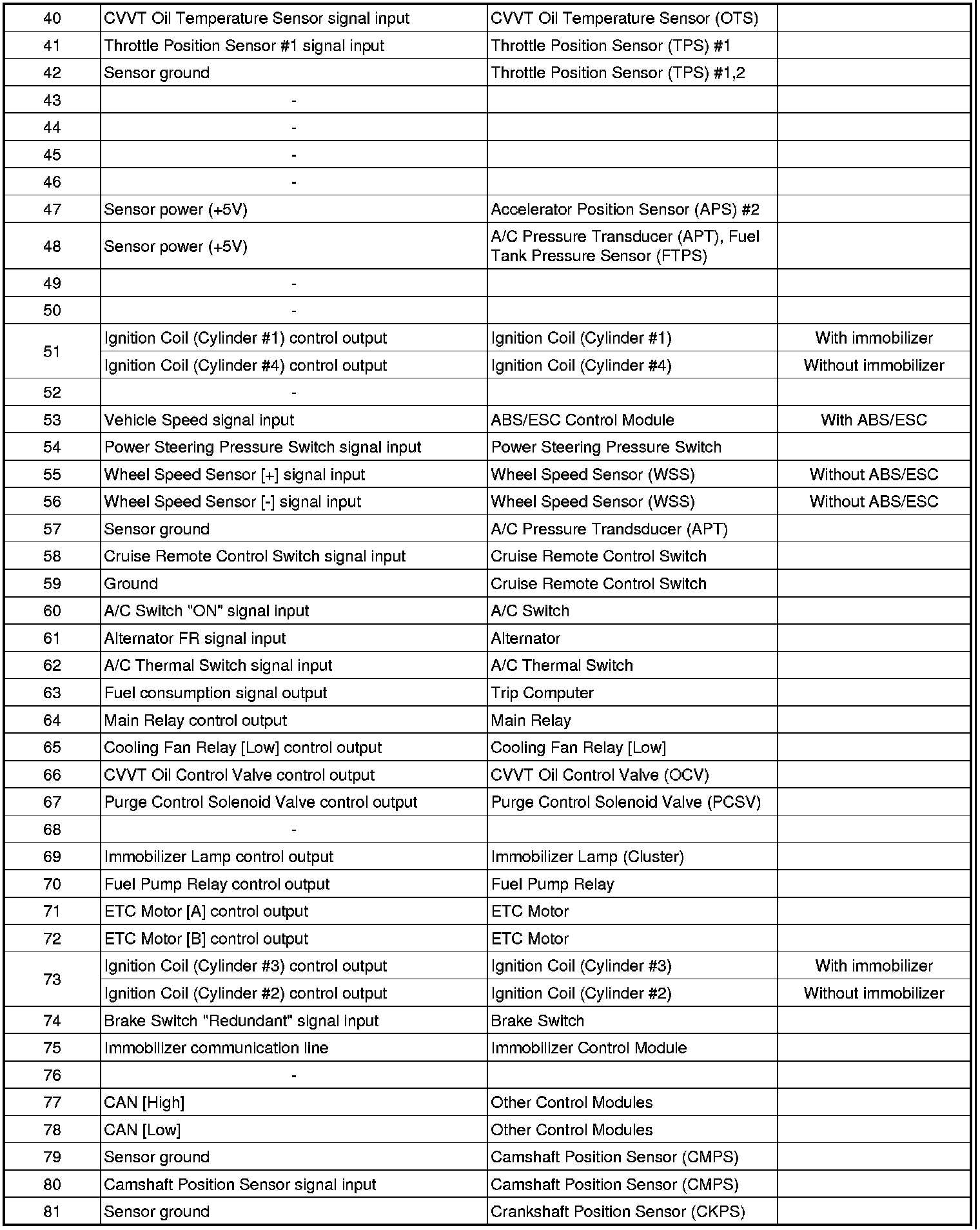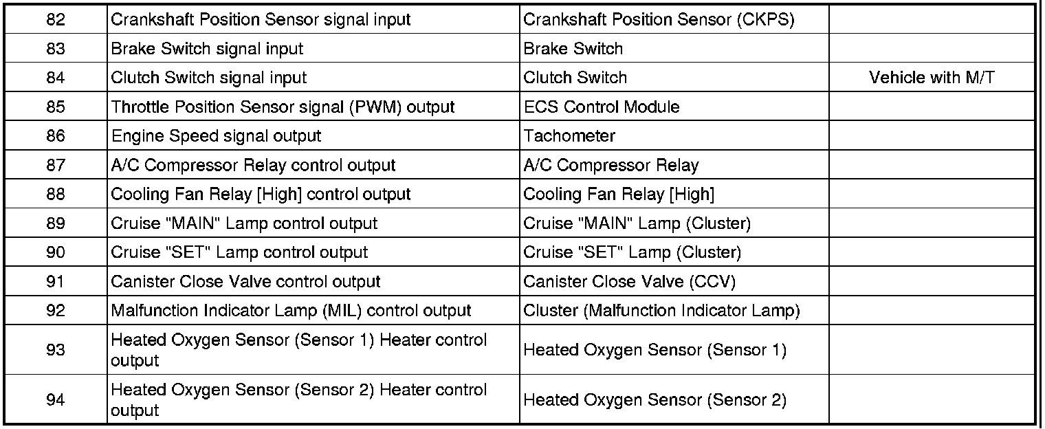 ECM TERMINAL INPUT/OUTPUT SIGNAL