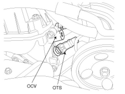 The CVVT Oil Temperature Sensor (OTS) is a negative coefficient thermistor used by the PCM to measure engine oil temperature for the purpose of adjusting CVVT calculations.