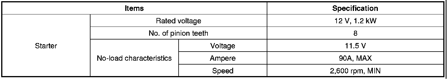 Starting System: Specifications