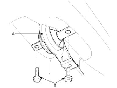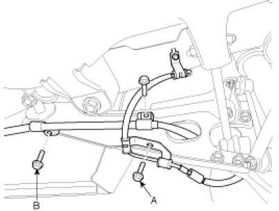 5. Install the wheel speed sensor and parking brake cable bracket by tightening the mounting bolts (A, B).