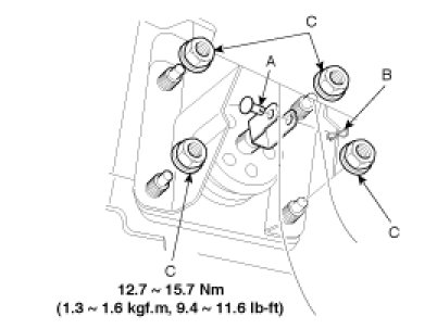 4. Remove the four booster mounting nuts (C).