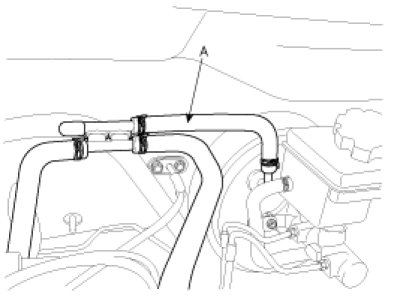 1. Disconnect the vacuum hose (B) from the brake booster (A).