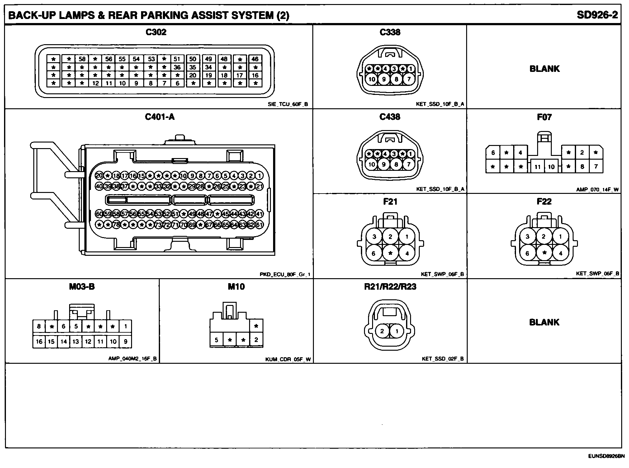 Back-Up Lamps & Rear Parking Assist System Connector Pin Outs: