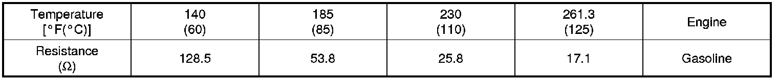 2. If the resistance value is not as shown in the table, replace the temperature sender.
