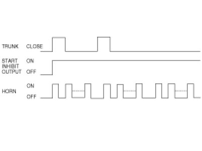 (2) If an alarm occurs due to an open point of entry, and then an unaffected door is opened, the start inhibitor will remain ON, but the horn alarm will not restart.