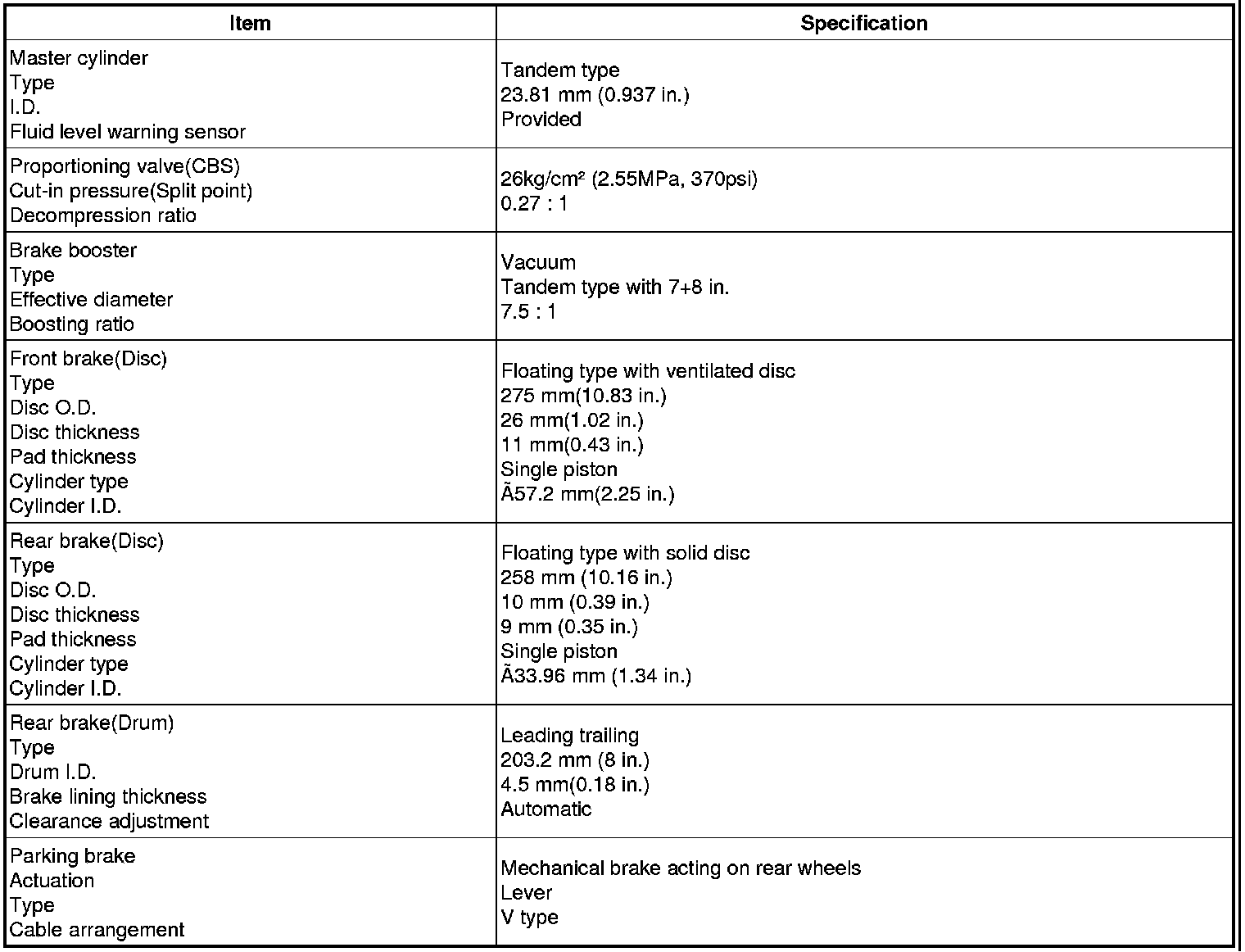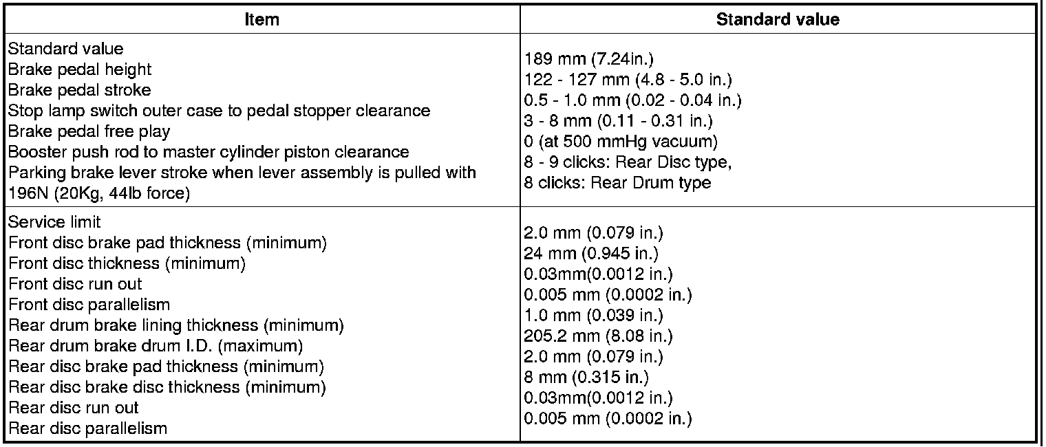 SPECIFICATIONS (Brake)