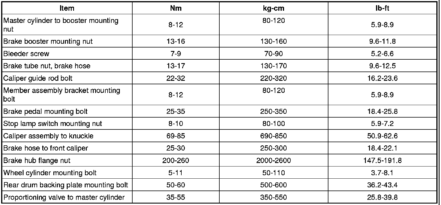 TIGHTENING TORQUE(Brake)