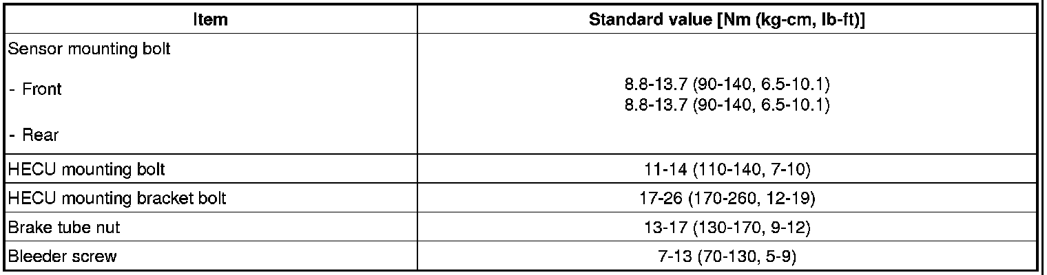TIGHTENING TORQUE(ABS&TCS)