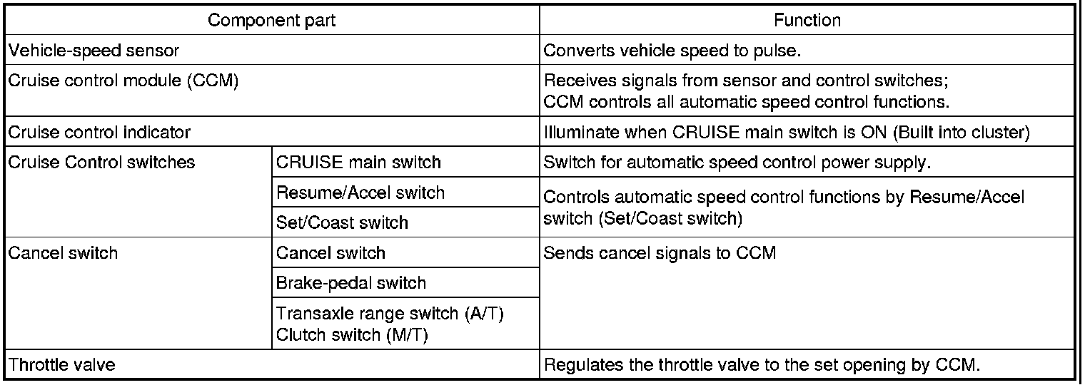 The main components of SMCC system are mode control switches, transaxle range switch, brake switch, vehicle speed sensor, cruise control module and control cable that connect throttle body.