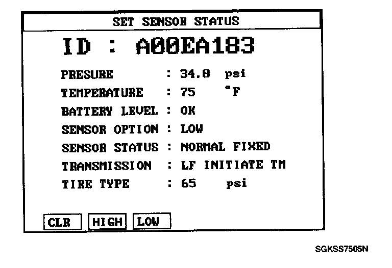 NOTE: Mode (Status/option) of the sensor installed to the vehicle should be Normal Fixed Base (Low).