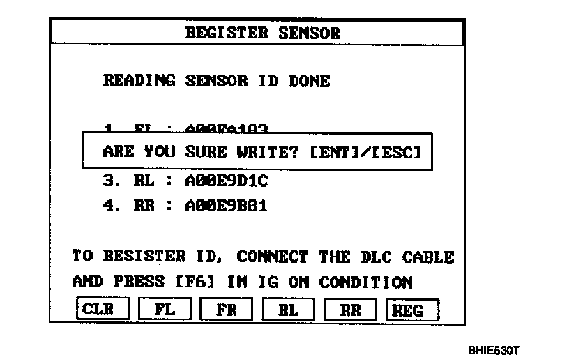 2. Read the four sensor's ids starting with sensor 1 (1 normally front left, 2 front right, 3 rear left, 4 rear right).