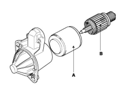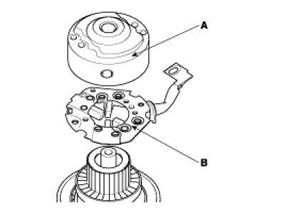 4. Remove the rear bracket (A) and brush holder assembly (B).