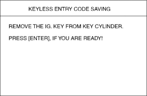 4. After removing the ignition key from key cylinder, push "ENTER" key to proceed to the next mode for code saving.