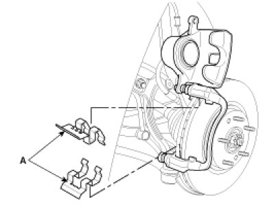 1. Install the pad retainers (A) on the caliper bracket.