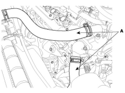 3. Disconnect radiator upper and lower hose(A).