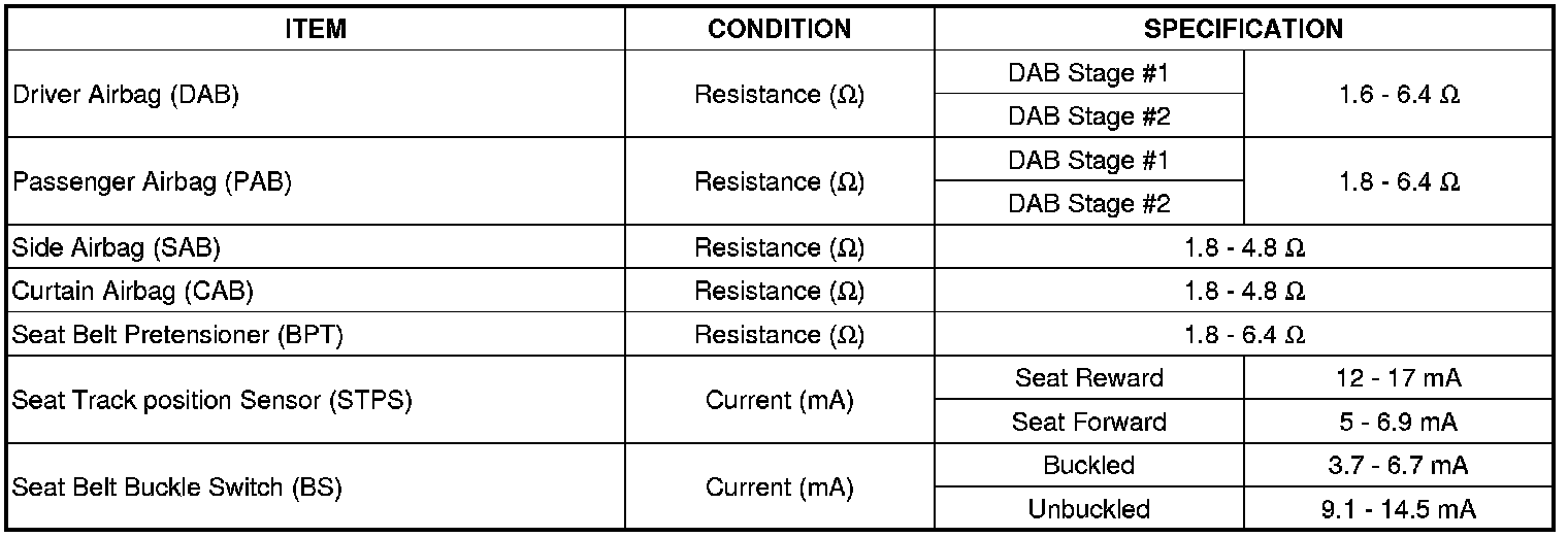 Restraints and Safety Systems: Specifications