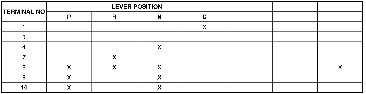 [ RANGE SWITCH continuity check table (Case of SPORTS MODE vehicle has no 3,2,L range) ]