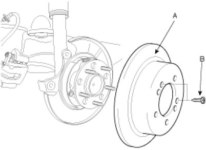 1. Install the brake disc (A) and tighten the screw (B).