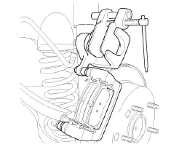 6. Push in the piston using the SST(09581-11000) so that the caliper will fit over the pads. Make sure that the piston boot is in position to prevent damaging it when installing the caliper.