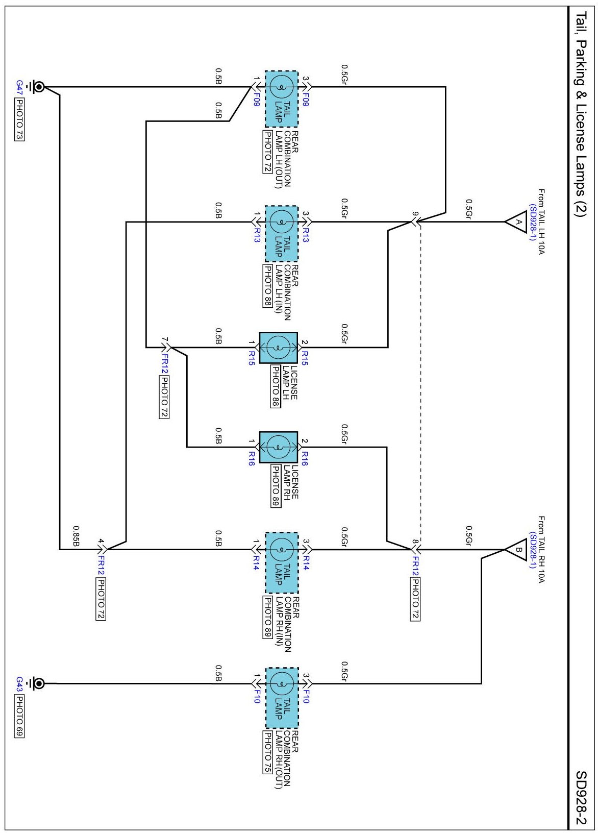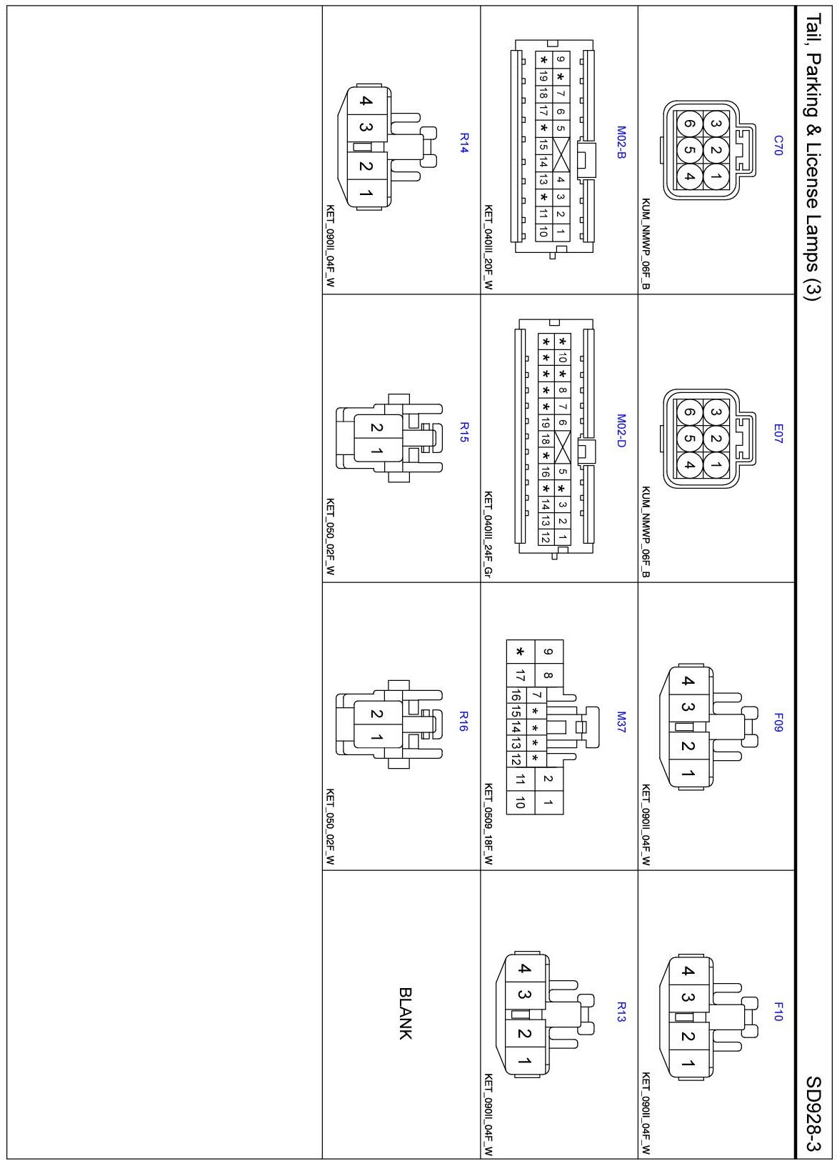 Tail, Parking & License Lamps Connector Pin Outs: