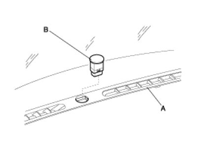 2. Using a suitable tool that will not damage the sensor, crash pad, or windshield remove the photo sensor (B) from the center of defrost nozzle (A).