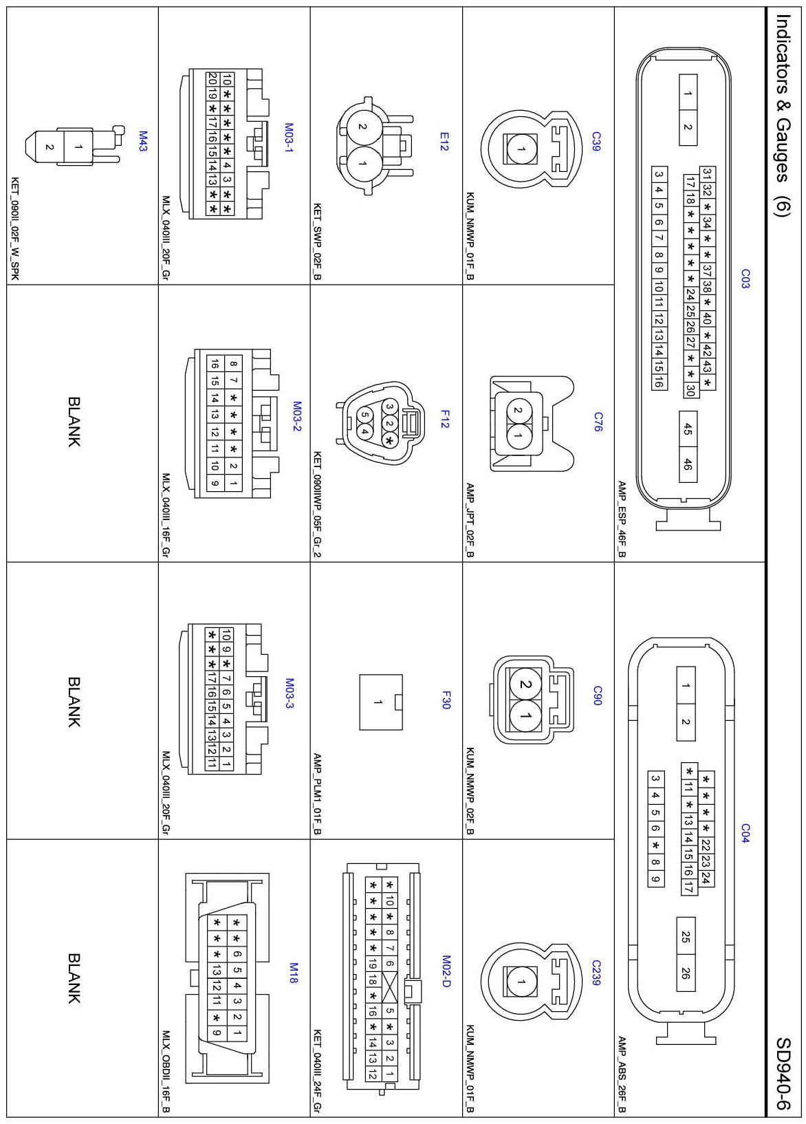 Indicators & Gauges Connector Pin Outs: