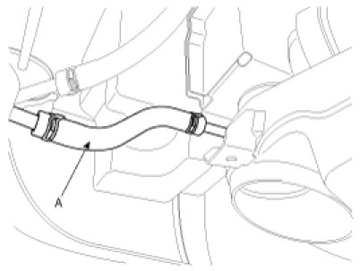 1. Drain the power steering fluid by disconnecting return hose (A).