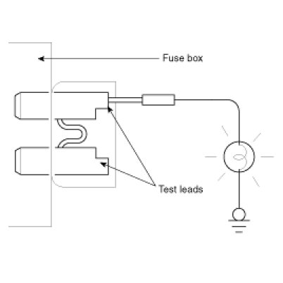 A blade type fuse test taps provided to allow checking the fuse itself without removing if from the fuse box. The fuse is good if the test lamp lights up when one lead is connected to the test taps (one at a time) and the other lead is grounded. (Turn the ignition switch so that the fuse circuit becomes operative)