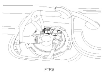 The evaporative emission control system prevents hydrocarbon vapors from escaping from the fuel tank into the atmosphere where they could form photochemical smog. Gasoline vapors are collected in the charcoal canister. The Fuel Tank Pressure Sensor (FTPS) is installed on fuel pump assembly and is an integral part of the evaporative monitoring system. The PCM monitors the FTPS signal to detect vacuum decay and excess vacuum. The FTPS measures the difference between the air pressure inside the fuel tank and atmospheric air pressure. The FTPS also checks the purge control solenoid valve operation and leak detection in the evaporative emission control system by monitoring pressure and vacuum levels in the fuel tank during the purge control solenoid valve operating cycles.