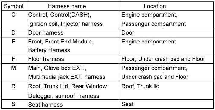 * It depends on vehicles, it is necessary to check the harness name symbol on the harness layouts for detailed symbol.