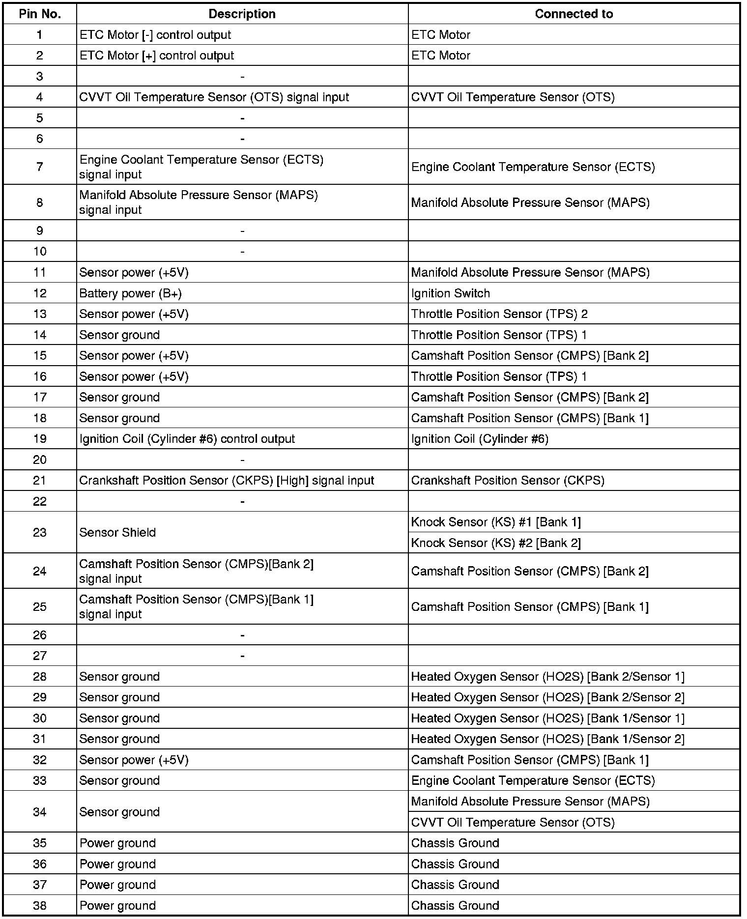 ECM Terminal And Input/Output signal