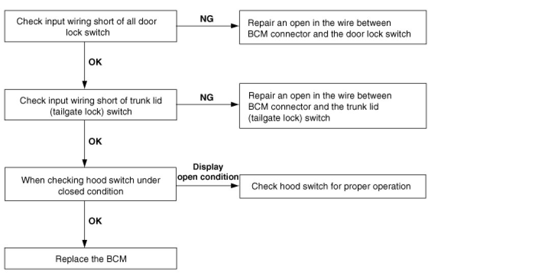 7. Central door lock function works, but keyless entry system does not work.