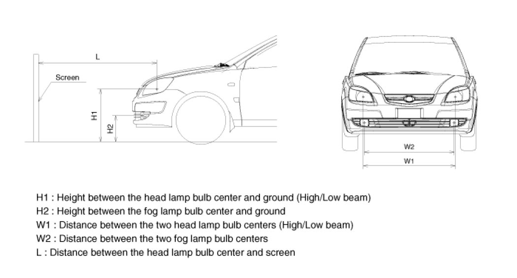 The front fog lamps should be aimed as the same manner of the head lamps aiming.