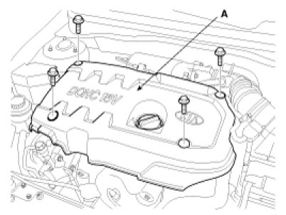 12. Install the timing belt upper cover(A) with 4 bolts(B).