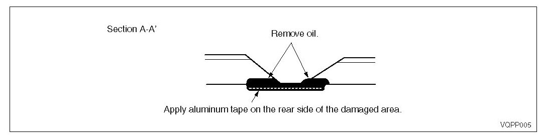 b) To repair a hole, remove oil from the damaged area and apply aluminum tape to the rear side of the damaged area.