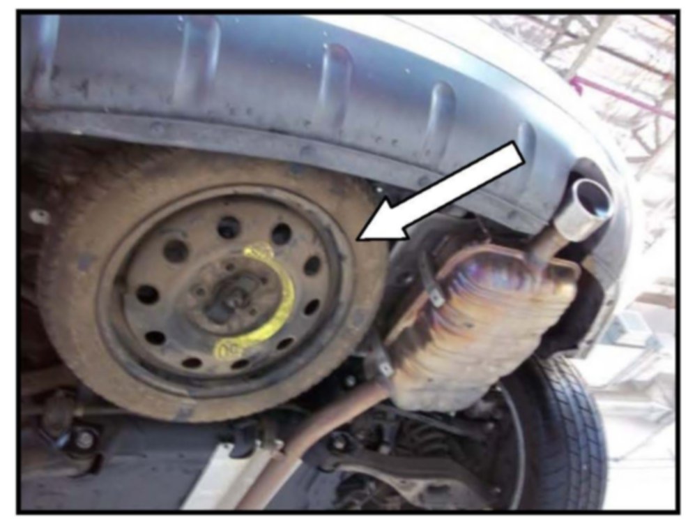 1. Remove the spare tire assembly that is located next to the muffler.