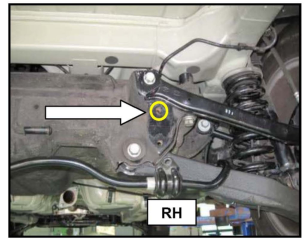 6. Use a 5 mm drill bit to drill a hole in the rear cross member through the stabilizer bar mounting upper hole on the right side.