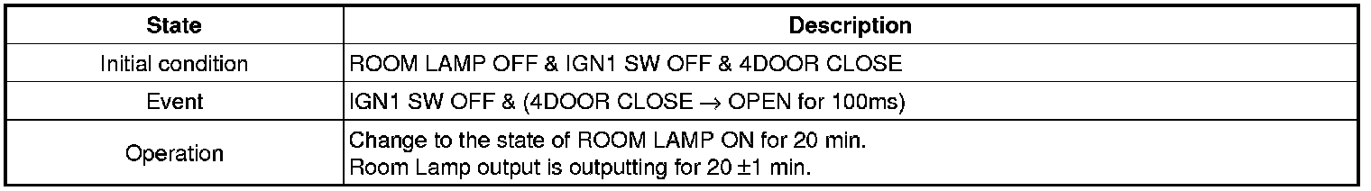 (1) In case of 4DOOR OPEN, start from Room Lamp on 20min State first.