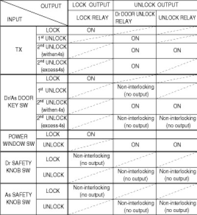(11) During LOCK output, when receiving LOCK signal by TRANSMITTER, KEY, POWER WINDOW SWITCH, Don't output LOCK.