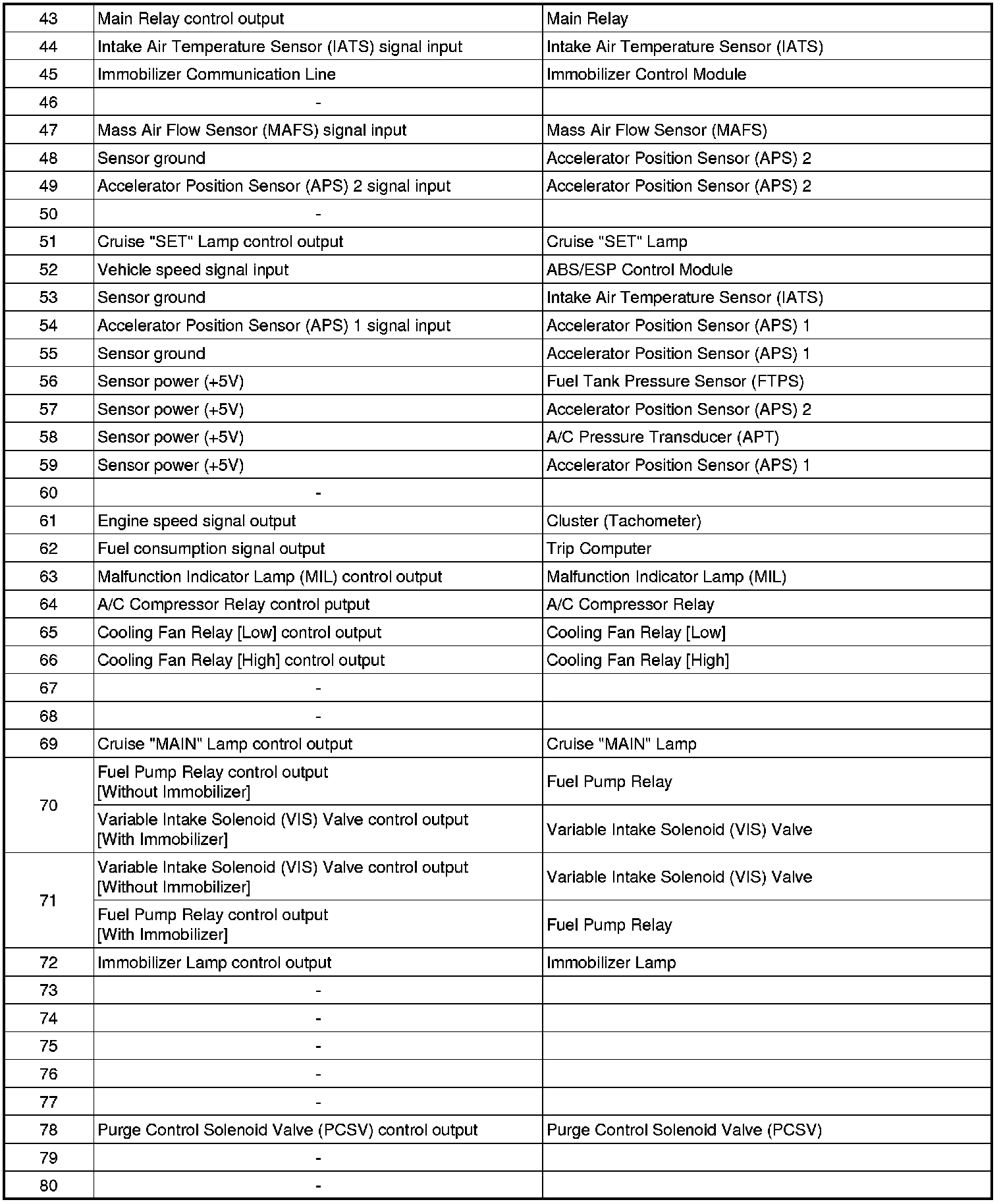 ECM Terminal Input/Output Signal