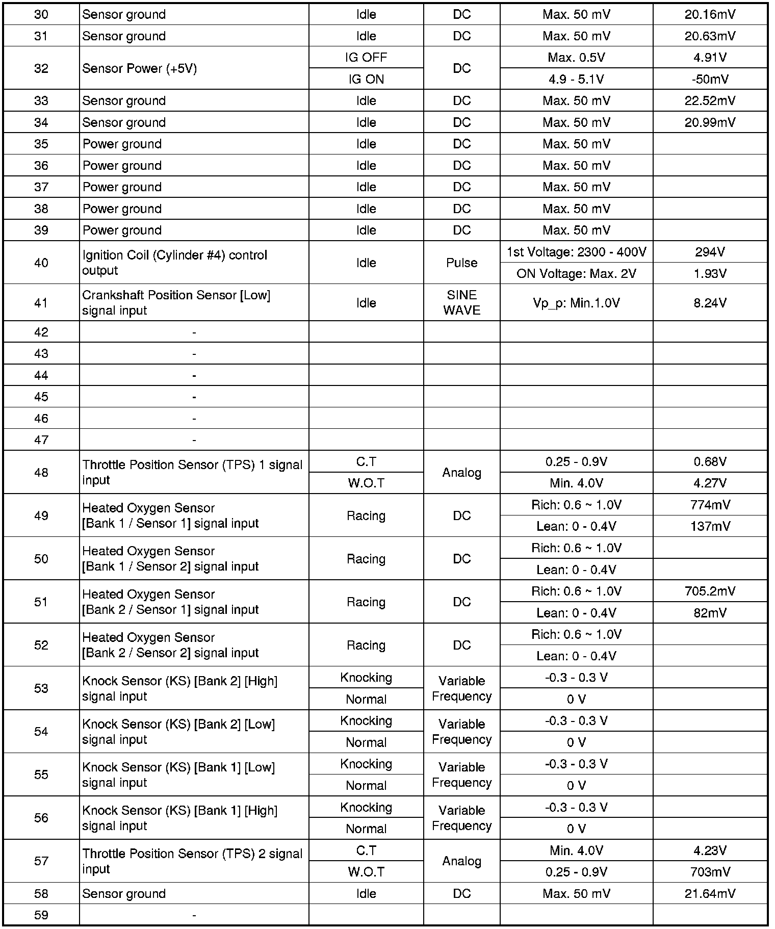 Pinout Values and Diagnostic Parameters