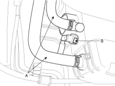 1. Disconnect the vacuum hoses (A) and the vacuum tube quick-connector (B).