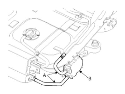 2. Remove the auxiliary canister (B) after removing the mounting bolts.