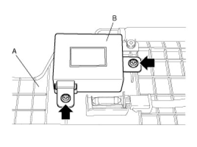 Remove the receiver (B) from the passenger lower crash pad (A).