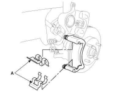1. Install the pad retainers (A).