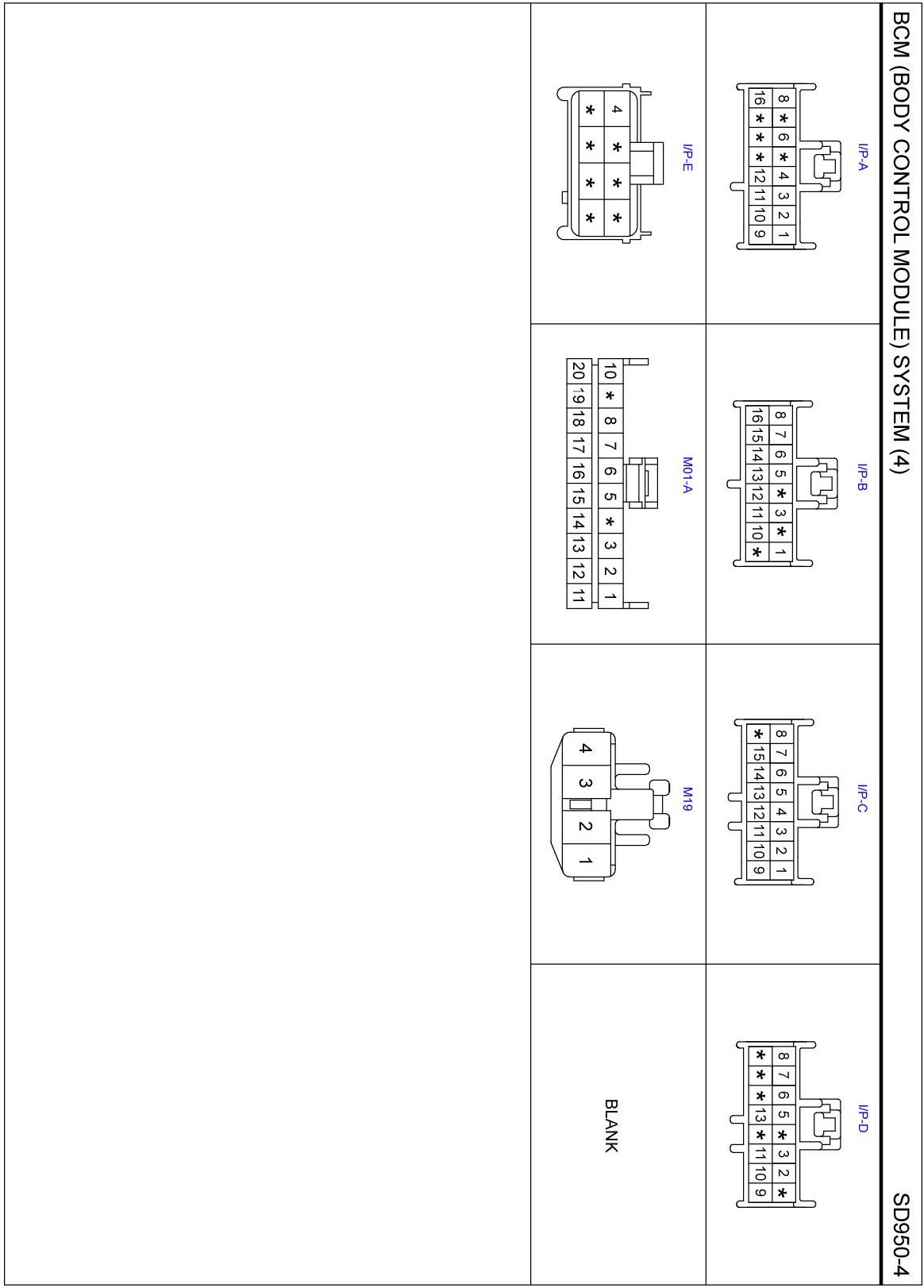 BCM (Body Control Module) System Connector Pin Outs:
