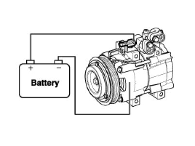 Connect the compressor terminal to battery(+) and the battery(-) terminal to the compressor body. Verify magnetic clutch operation by a clicking noise.
