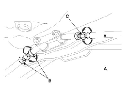 2. After adjusting the tie rod(C), tighten both nuts(B) to the specified torque.