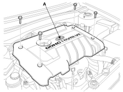 1. Remove the engine cover (A).
