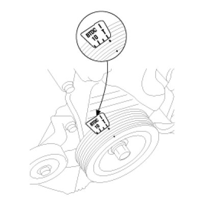 11. Turn the crankshaft pulley, and align its groove with timing mark "T"of the timing belt cover.